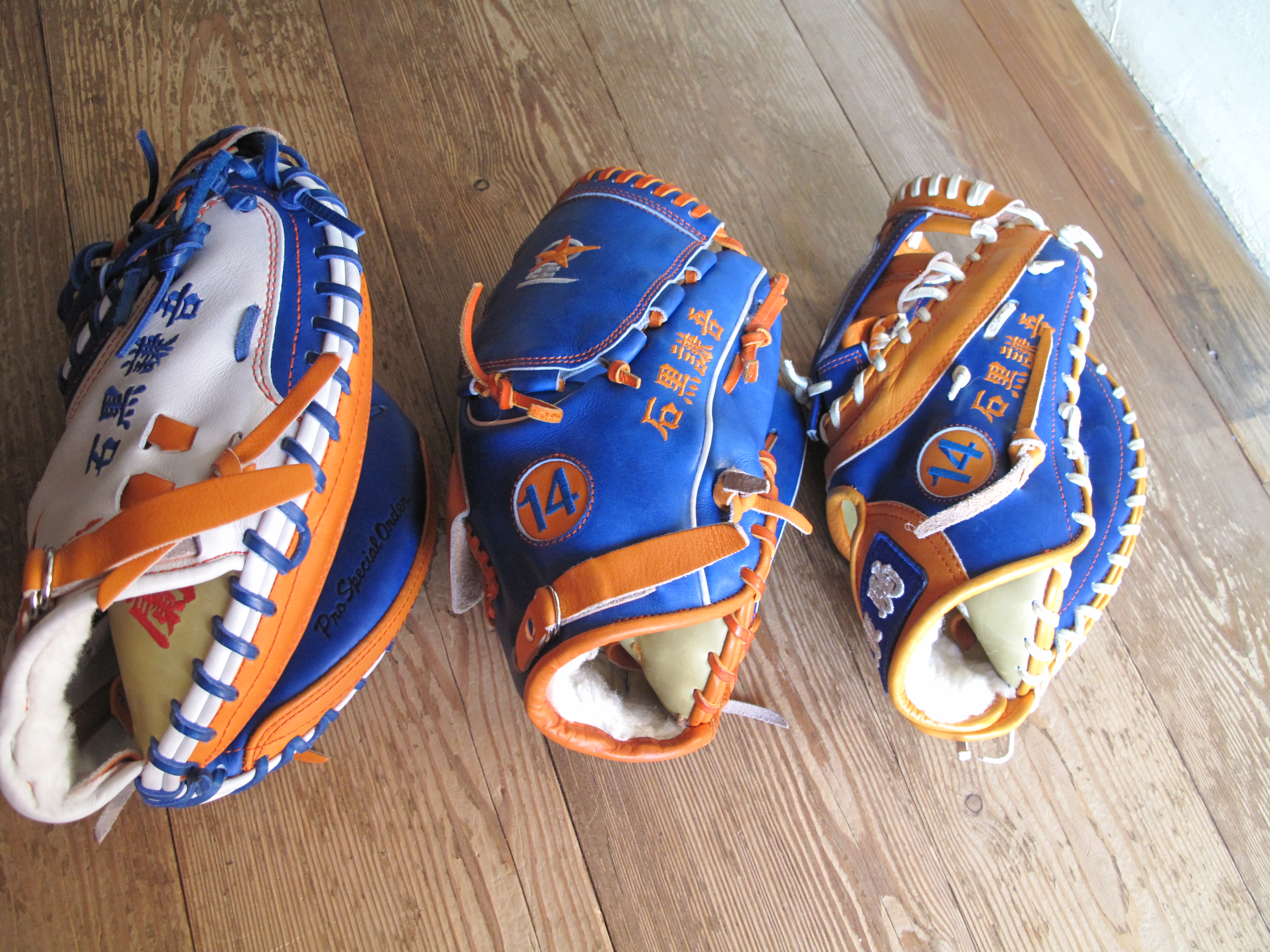↑これが、ここ3年ほどで徐々に揃えていったオーダーグラブ群。